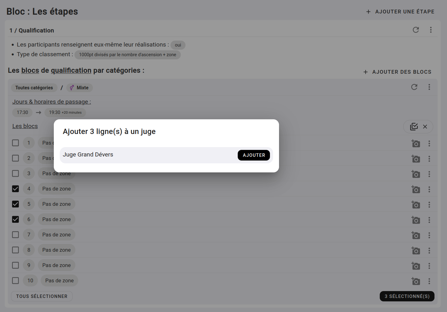 3. Ajouter les voies/blocs aux juges.