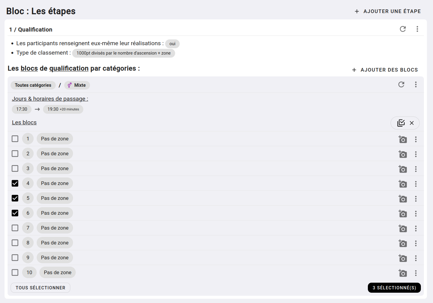 Dans la liste des blocs / voies de votre contest, trouvez un icon de deux case à cocher superposé en haut à droit de la liste des voies.