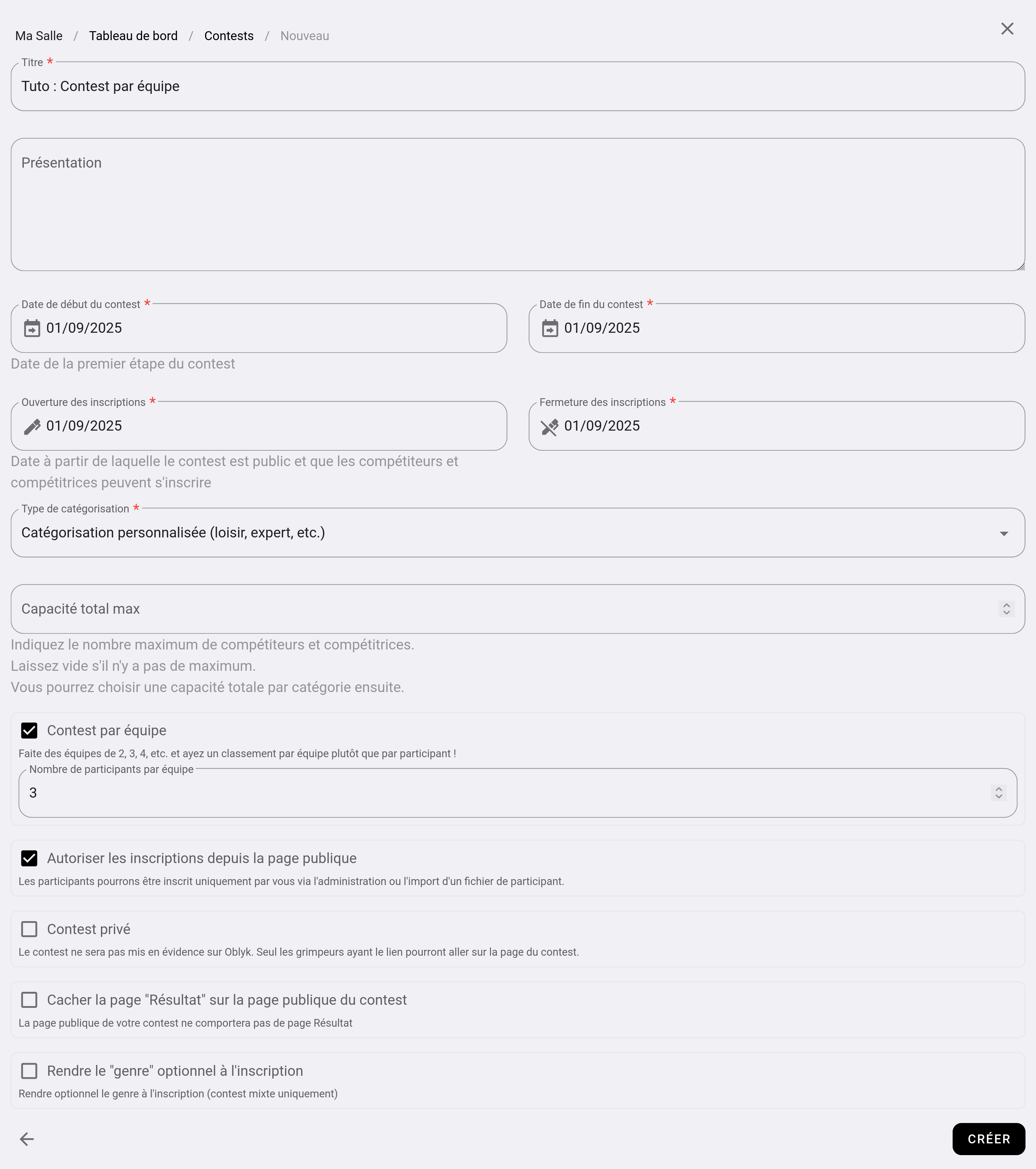 Rendez-vous sur le dashboard de votre salle, cliquez sur CONTEST puis faite : NOUVEAU CONTEST