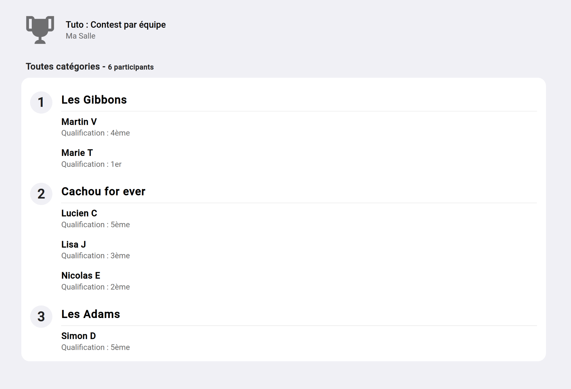 Les contests par équipe vous permettent de créer facilement un contest dans lequel vos compétiteurs se groupent en binôme, trinôme, etc.
