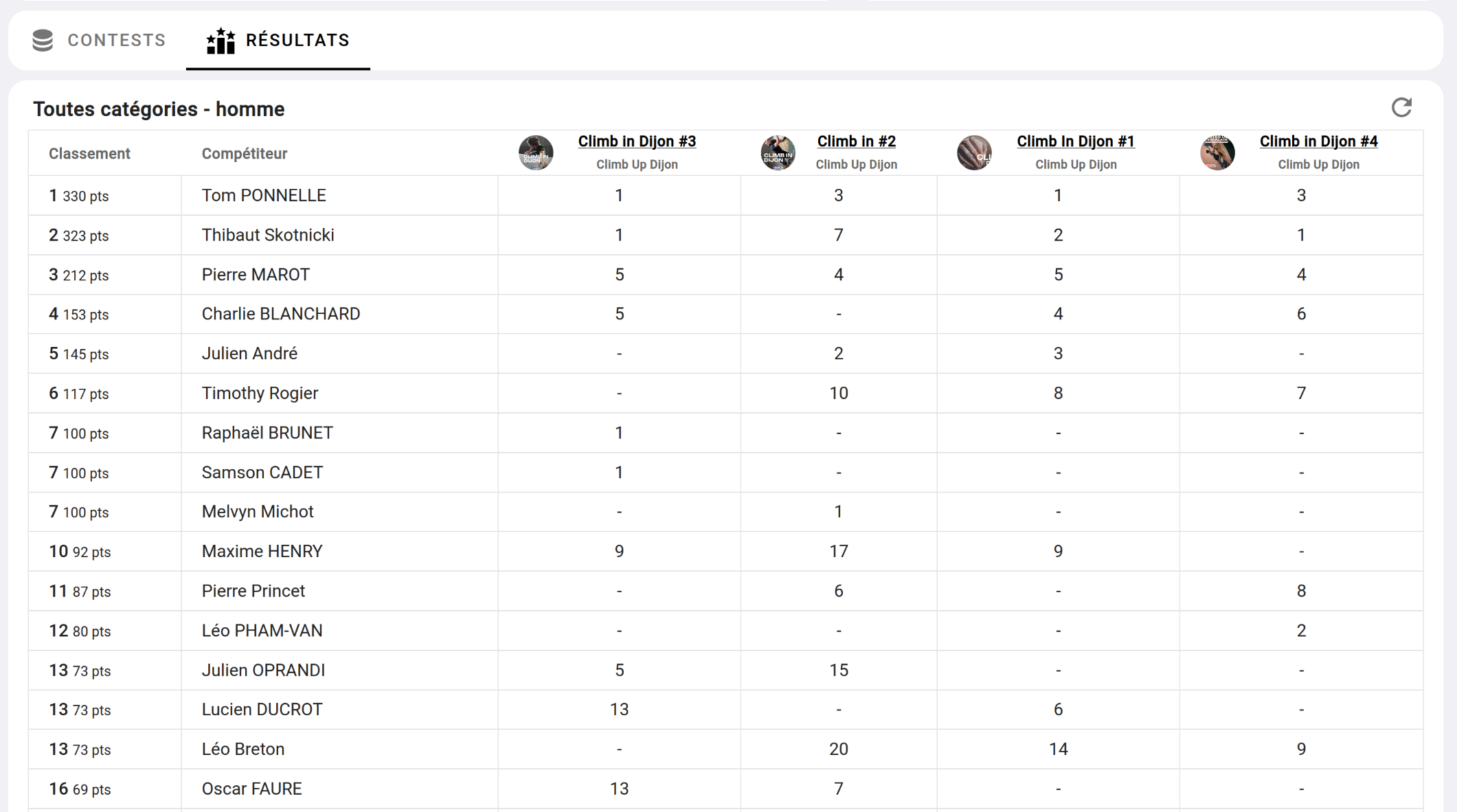 Dans l’onglet résultat, vous aura le classement général de vos différents contests !