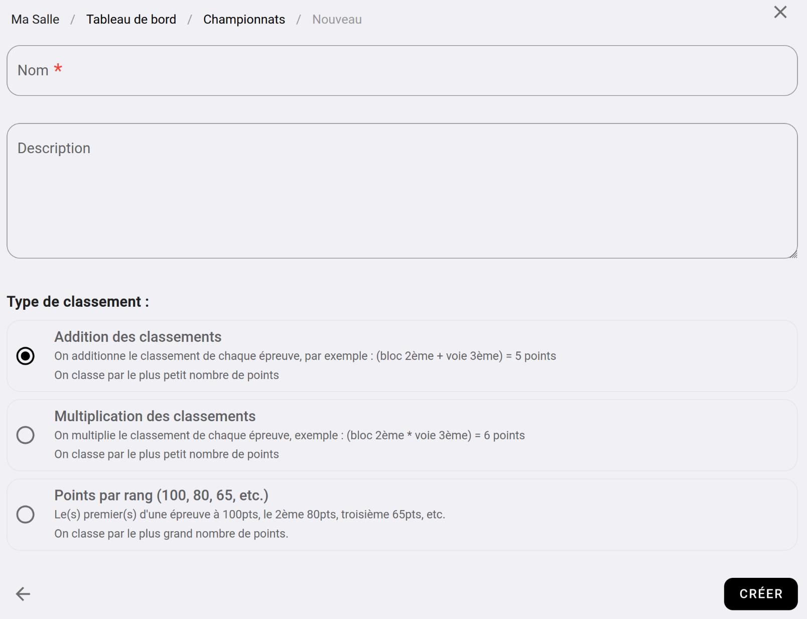 Vous pouvez donner un nom, une présentation et comment vous voulez classer les différents contests de votre championnat.